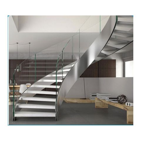 Escaleras curvas de madera de acero para interiores, gran oferta, escalera helicoidal de vidrio para Exterior
