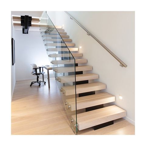 Escalera de cristal recta de un solo tirante moderna con barandilla de vidrio